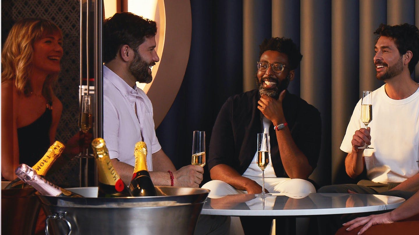 Give your phone a shake to reveal a hidden button—tap it once, and a bottle of Moët & Chandon Impérial® will be delivered almost anywhere on board.