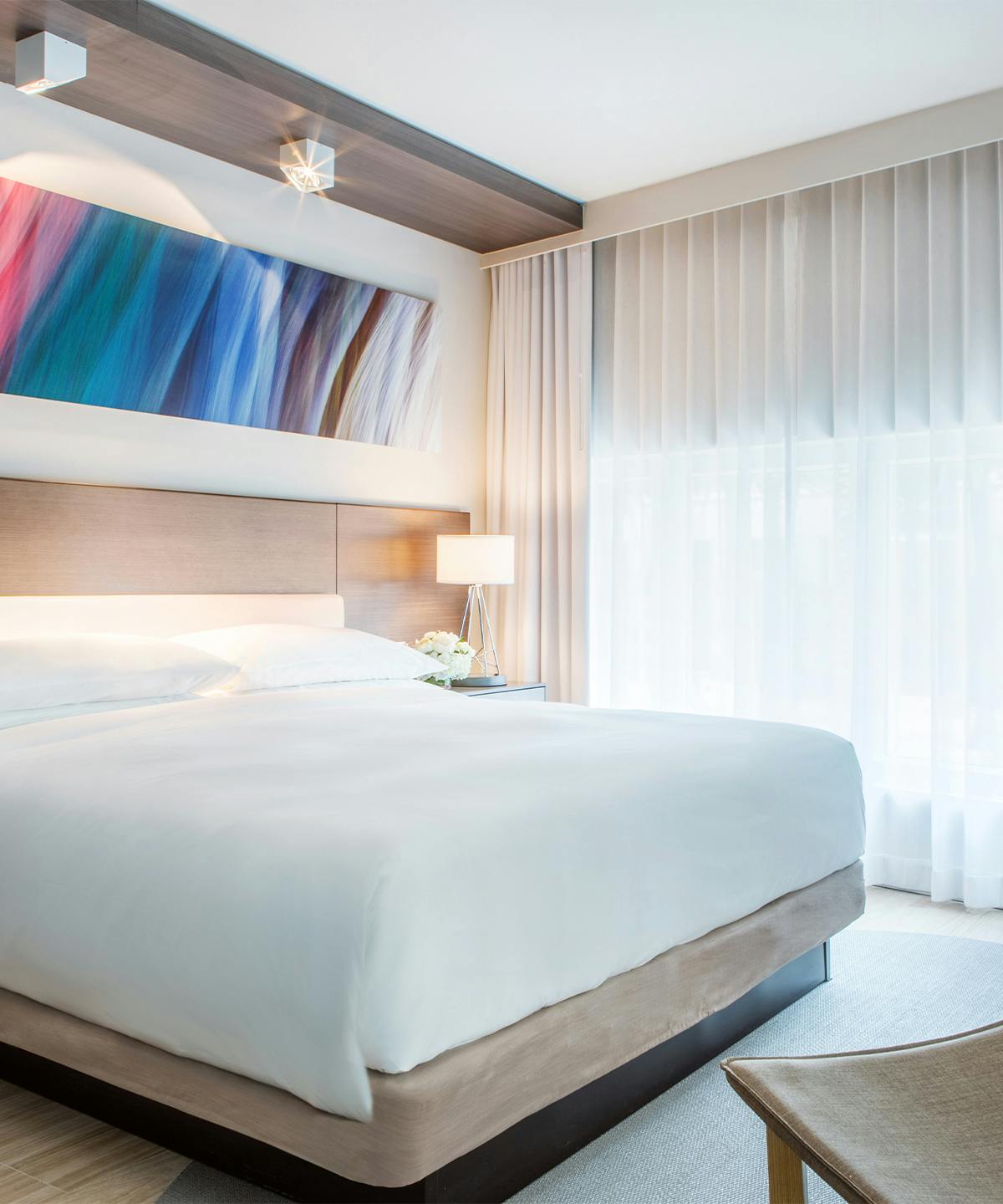 - Modern hotel rooms with thoughtful amenities and flat screen TVs